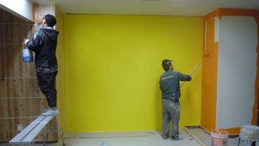 - Lăn một đến hai lớp sơn lót kháng kiềm sau đó phủ 2 lớp sơn màu hoàn thiện, cũng có 1 số công trình lăn 2 lớp sơn kháng kiềm theo yêu cầu chủ nhà.